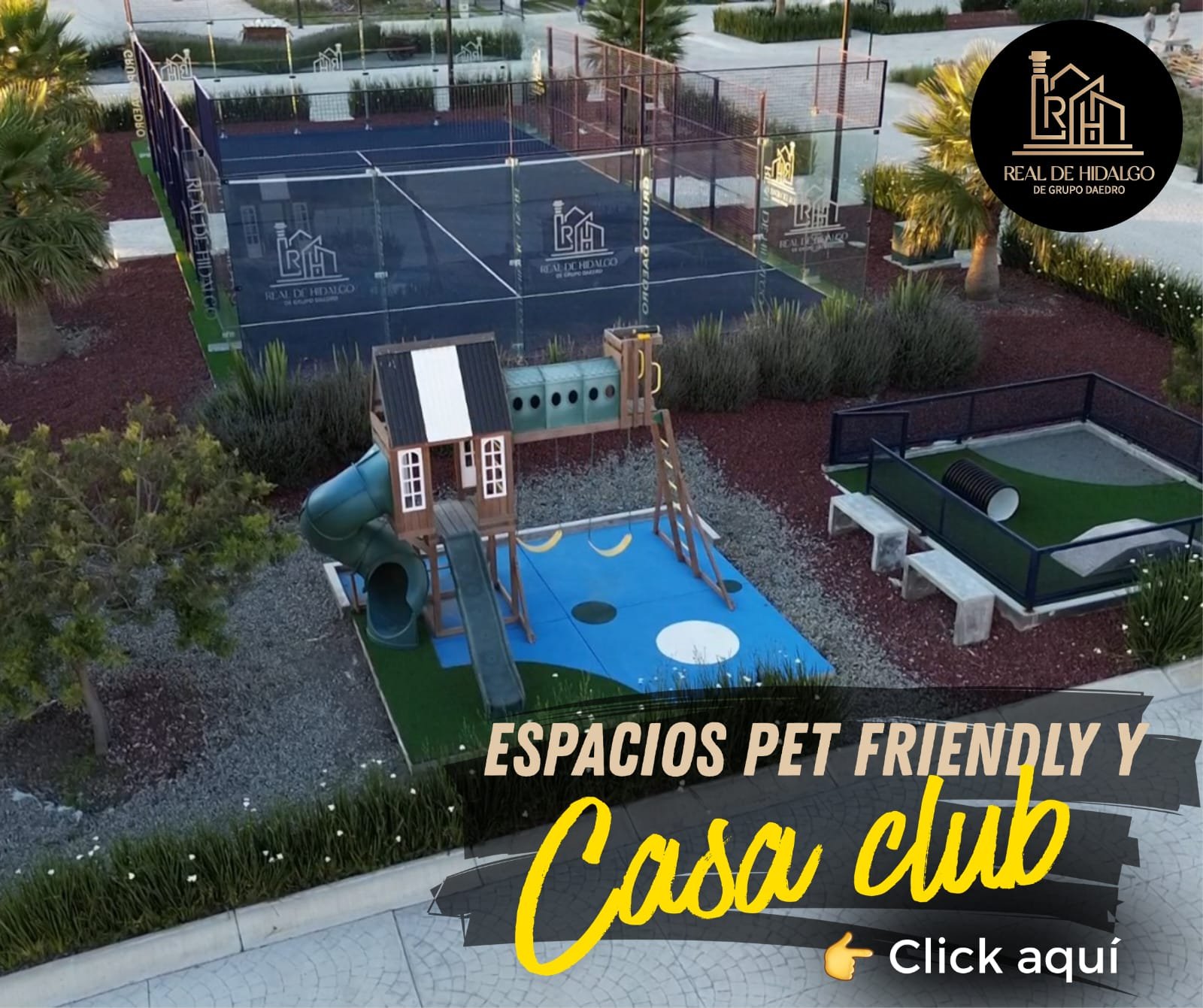 Entre sus desarrollos destaca Real de Hidalgo Residencial, un concepto integral que reúne diseño de calidad, áreas verdes, casa club, cancha de pádel, zonas pet friendly y una plaza comercial integrada, consolidando un entorno completo y con gran valor patrimonial.